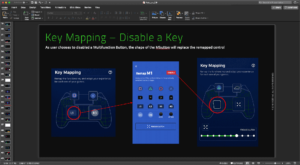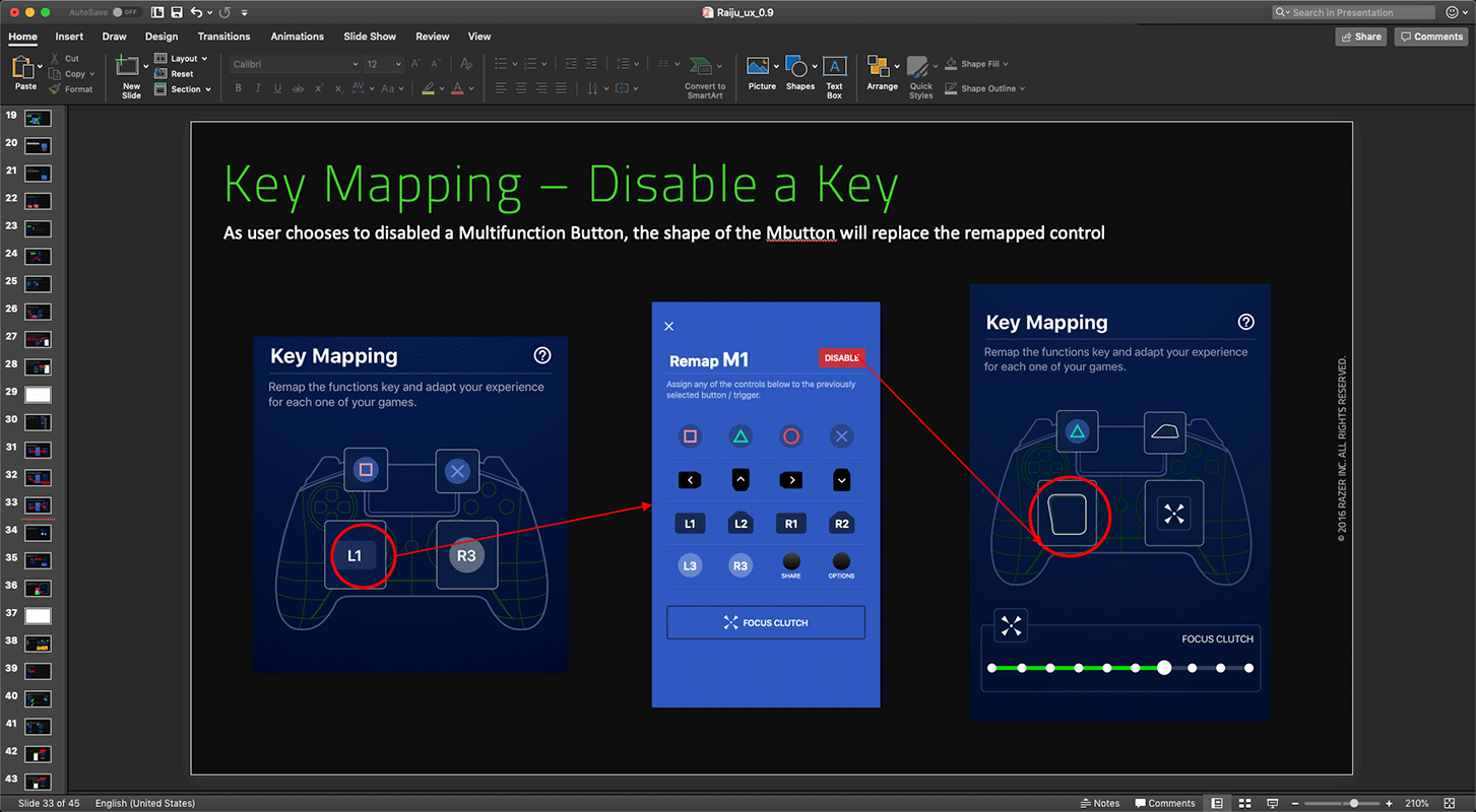 To consolidate the process, we document every decision made along the way. The prototype will help provide information on the UX/UI and the expected transitions effects; it will serve as a Gold Master for the developer. In a fast-paced environment like Razer, it is essential to take responsibility for the work done. Once delivered to the development team, this document isn't expected to change.